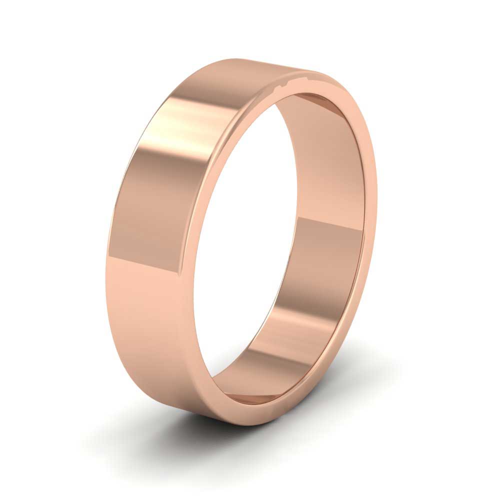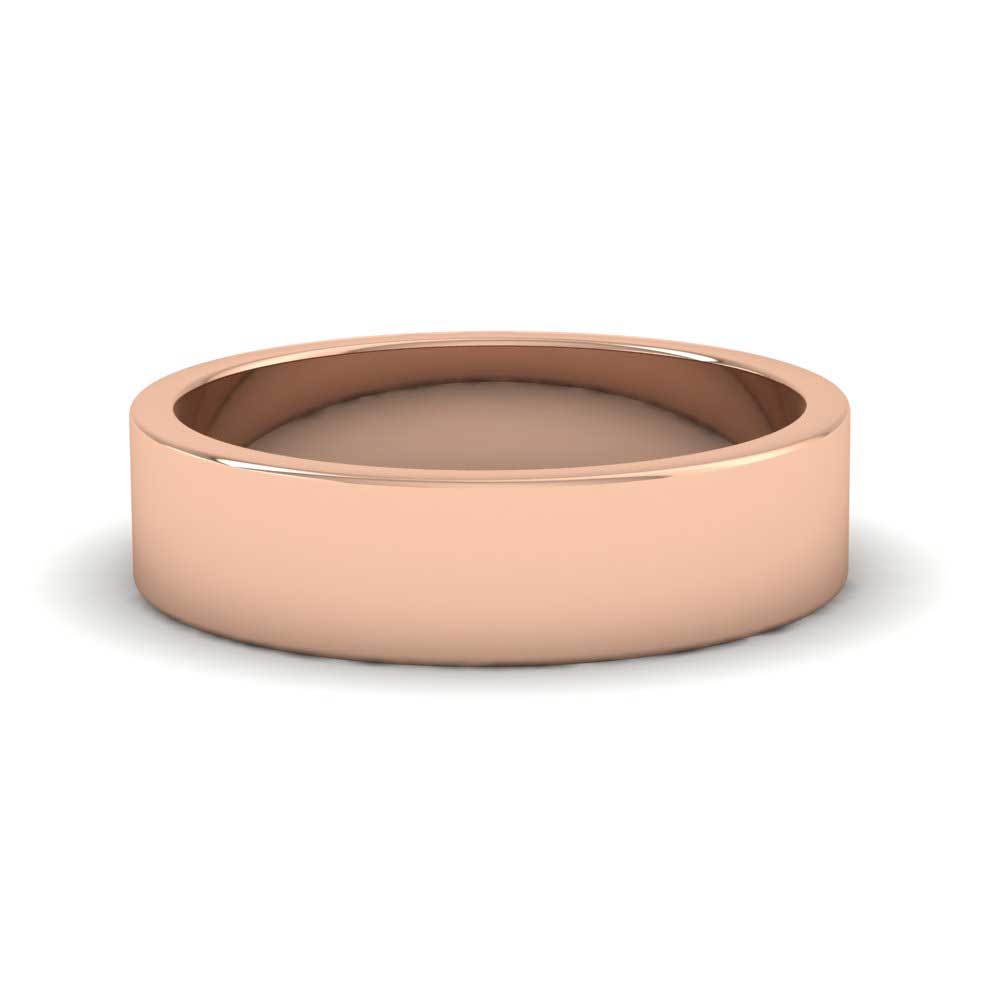 5mm wide extra heavy weight 9ct rose gold wedding ring. This wedding band has a flat outside profile with a flat inside and is available in sizes D-Z+6.