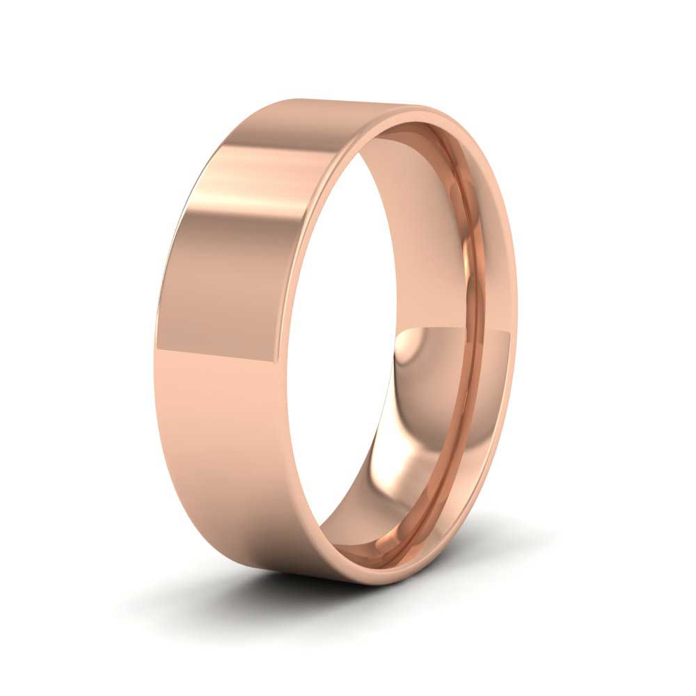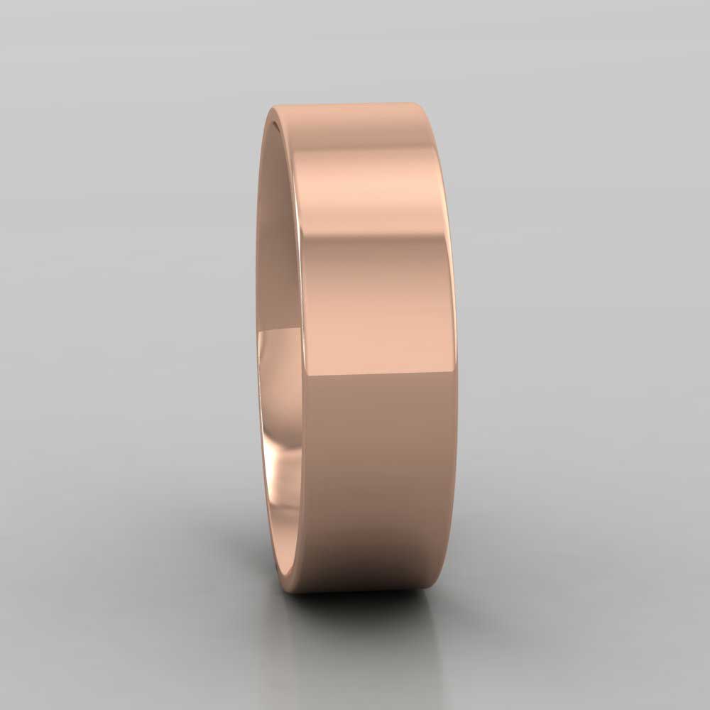 6mm wide classic weight 9ct rose gold wedding ring. This wedding band has a flat outside profile with a rounded court shape inside for a softer and more comfortable feeling when worn. Available in sizes D-Z+3.