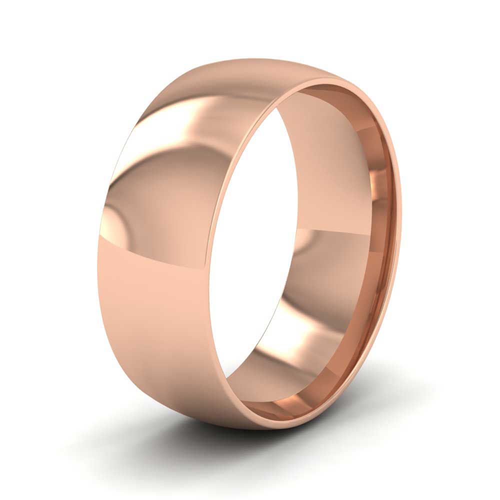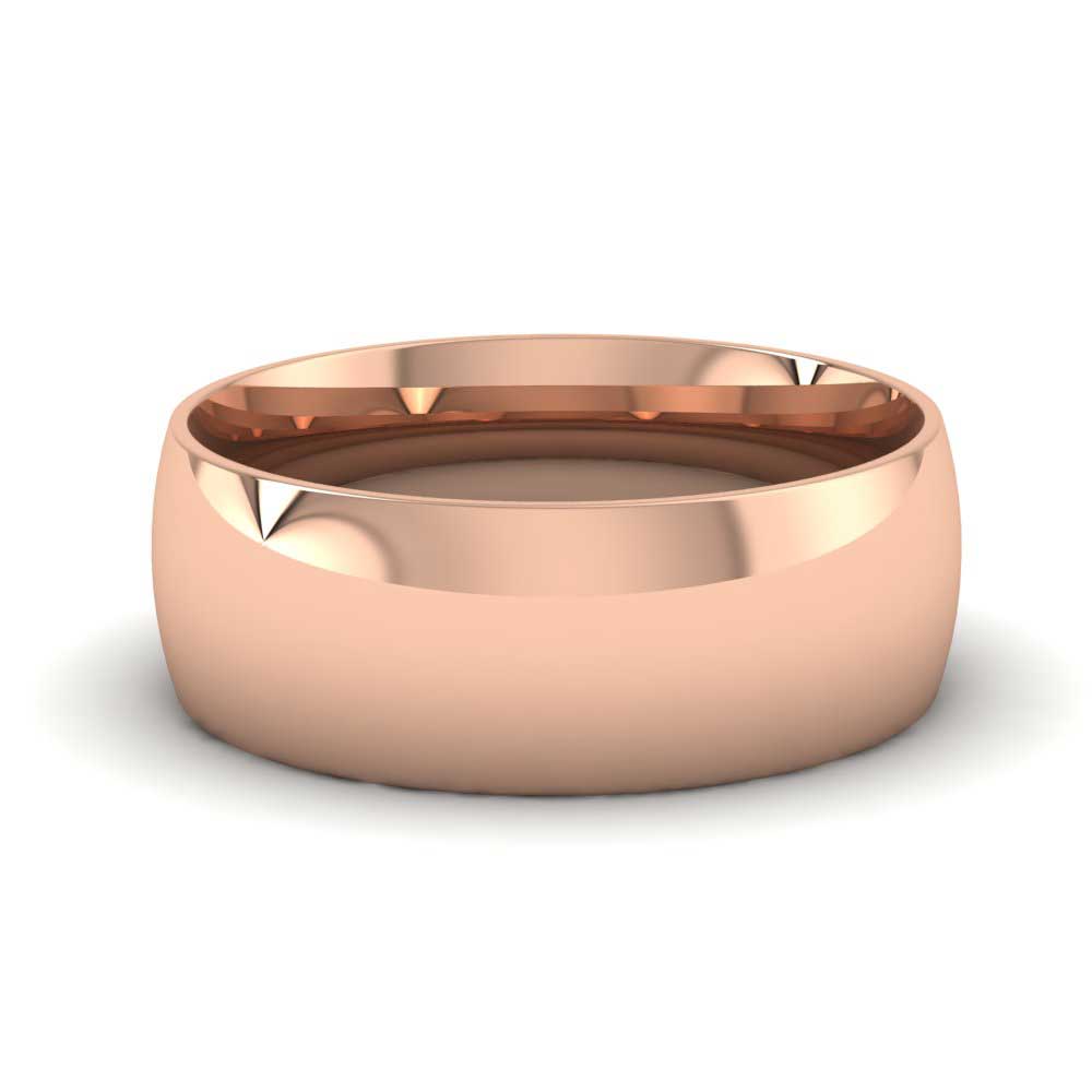 7mm wide classic weight 9ct rose gold wedding ring. This wedding band has a rounded outside profile with a rounded court shape inside for a softer and more comfortable feeling when worn. Available in sizes D-Z+3.