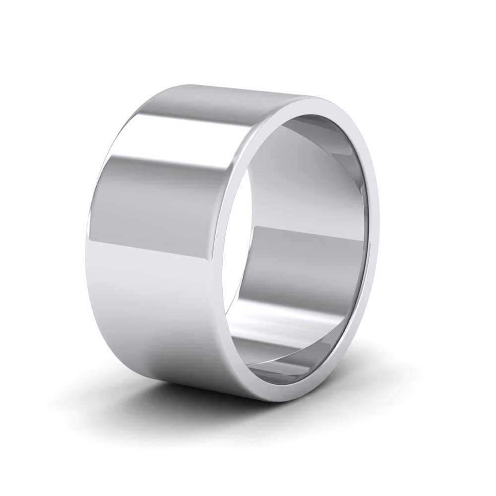 Wide 10mm extra heavy weight 9ct white gold wedding ring. This wedding band has a flat outside profile with a flat inside and is available in sizes D-Z+6.