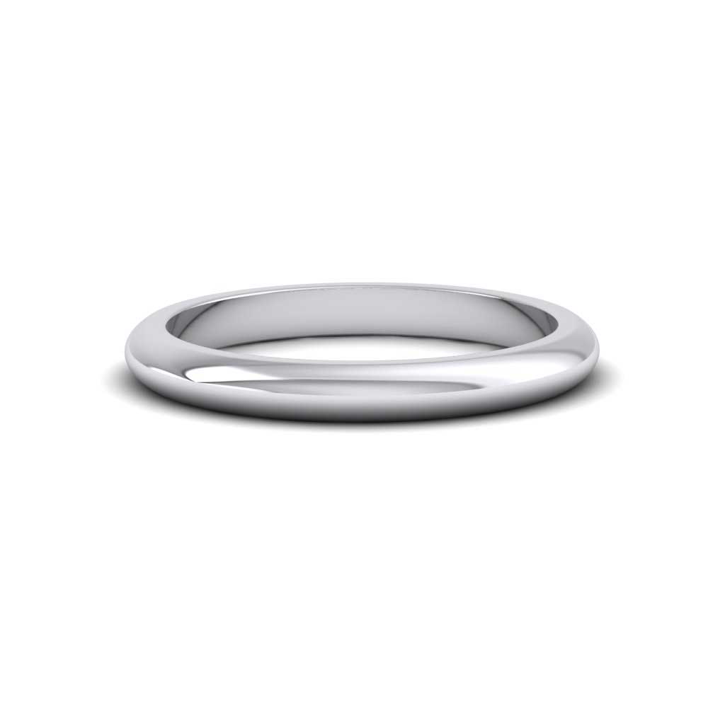 Narrow 2.5mm wide super heavy weight 9ct white gold wedding ring. This wedding band has a rounded outside profile with a flat inside and is available in sizes D-Z+12.
