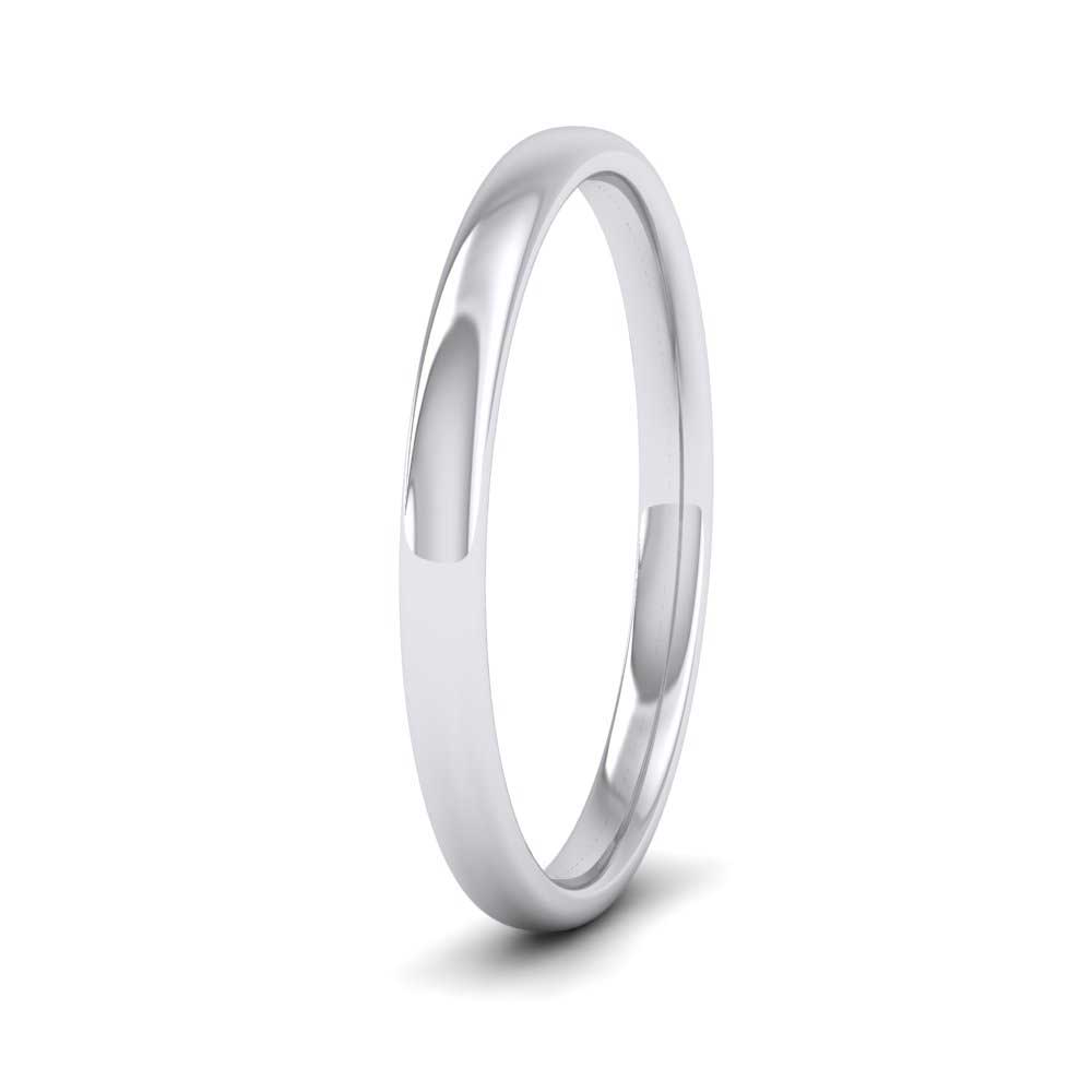 Narrow 2mm wide classic weight 9ct white gold wedding ring. This wedding band has a shallow curved outside profile softened rounded edges with a rounded shape inside for a softer and more comfortable feeling when worn. Sizes D-Z+3.