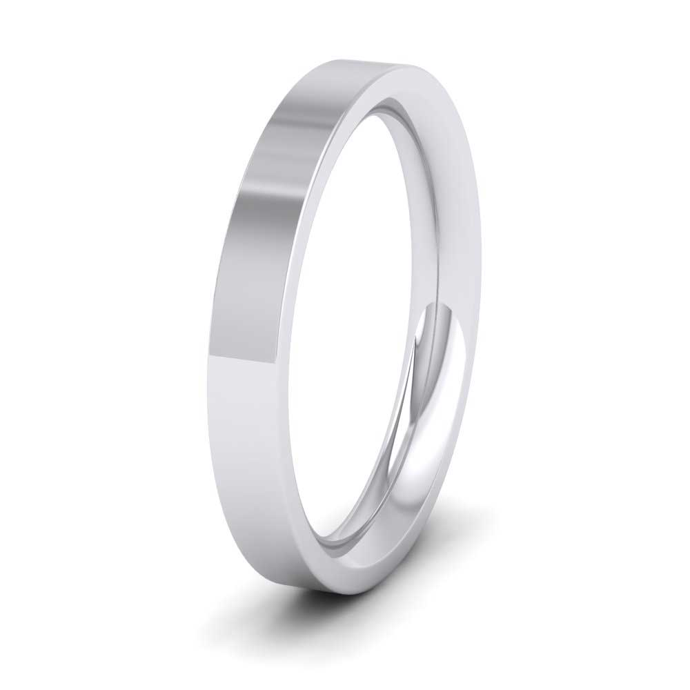 3mm wide super heavy weight 9ct white gold wedding ring. This wedding band has a flat outside profile with a rounded court shape inside for a softer and more comfortable feeling when worn. Available in sizes D-Z+12.