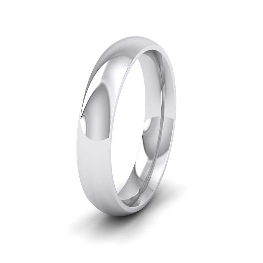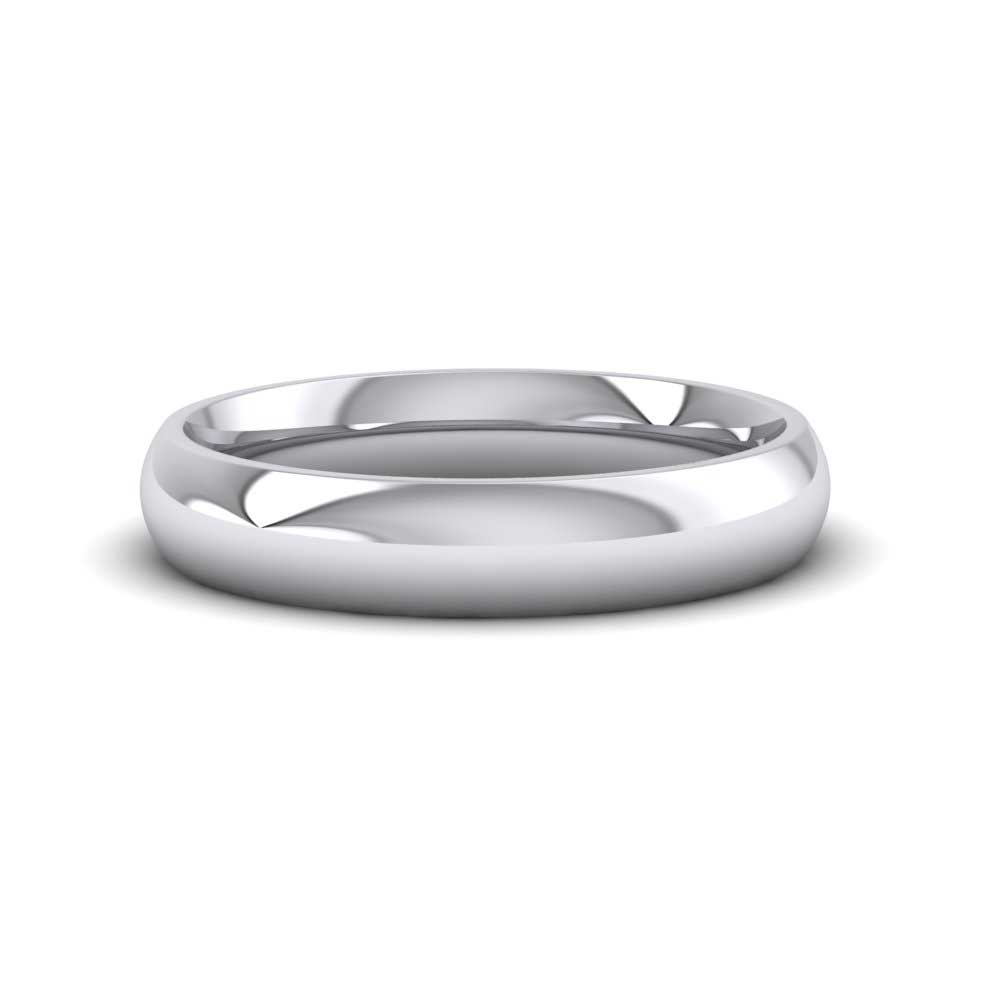 4mm wide extra heavy weight 9ct white gold wedding ring. This wedding band has a rounded outside profile with a rounded court shape inside for a softer and more comfortable feeling when worn. Available in sizes D-Z+6.