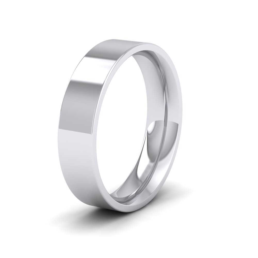 5mm wide extra heavy weight 9ct white gold wedding ring. This wedding band has a flat outside profile with a rounded court shape inside for a softer and more comfortable feeling when worn. Available in sizes D-Z+6.