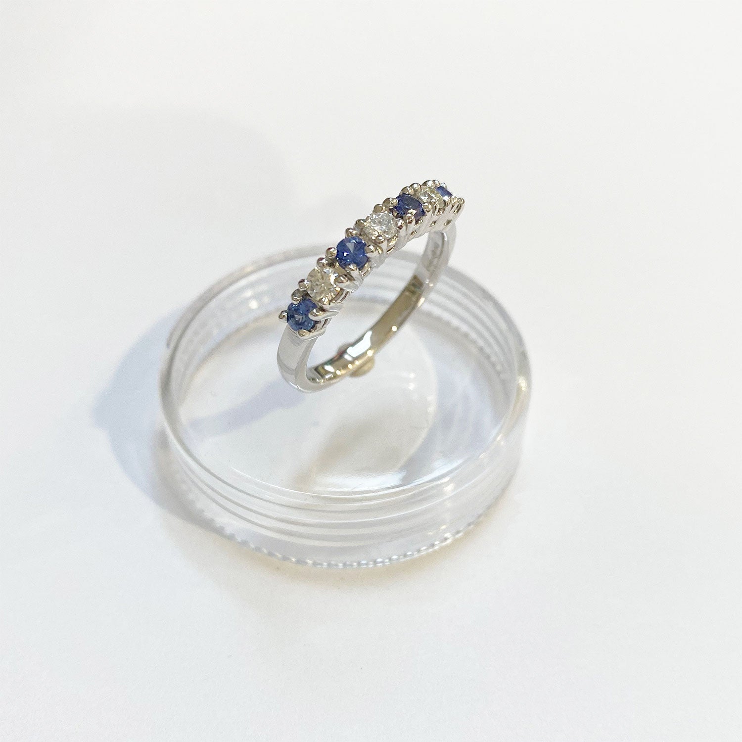 9ct White Gold Seven Stone Diamond And Blue Sapphire Ring