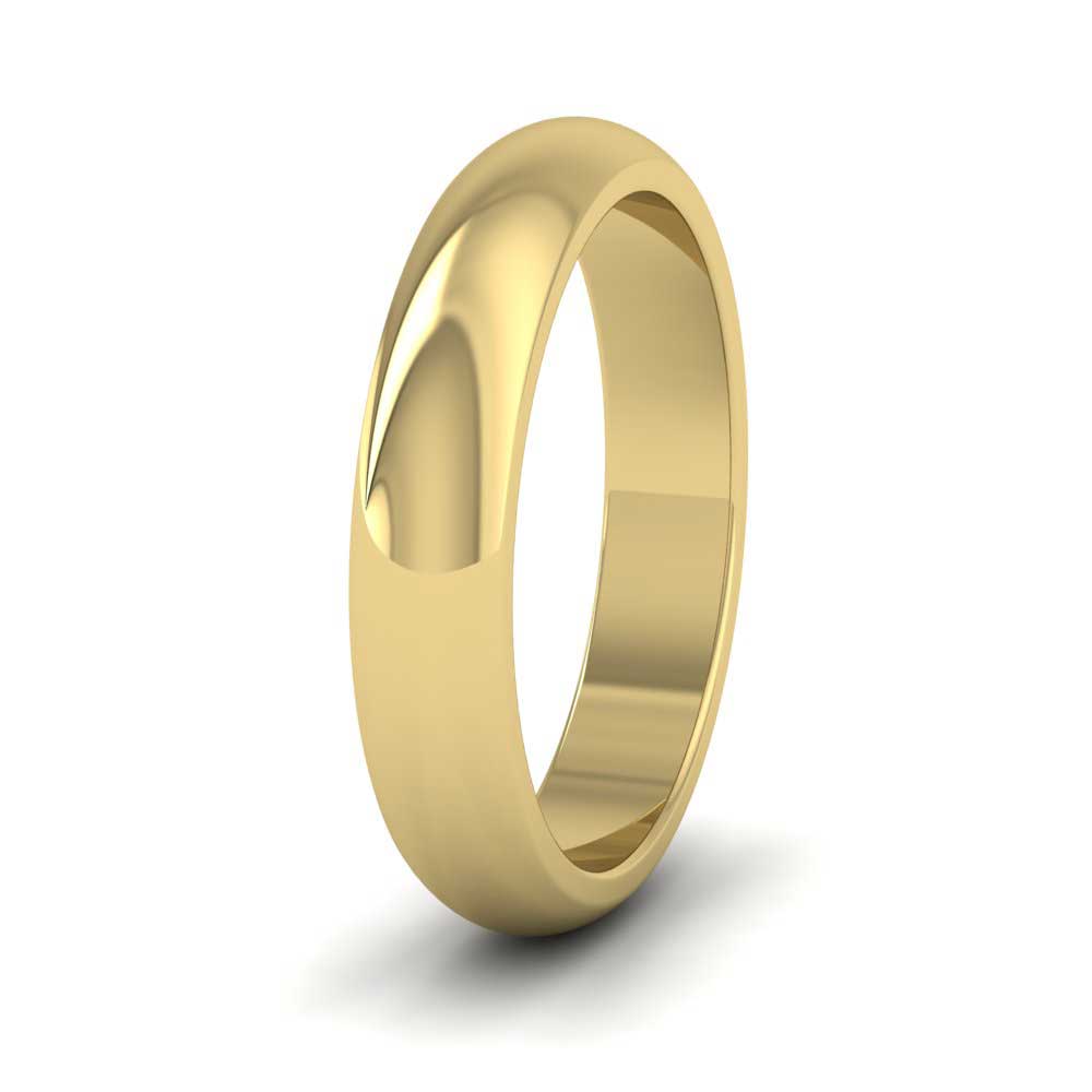 4mm wide super heavy weight 9ct yellow gold wedding ring. This wedding band has a rounded outside profile with a flat inside and is available in sizes D-Z+12.