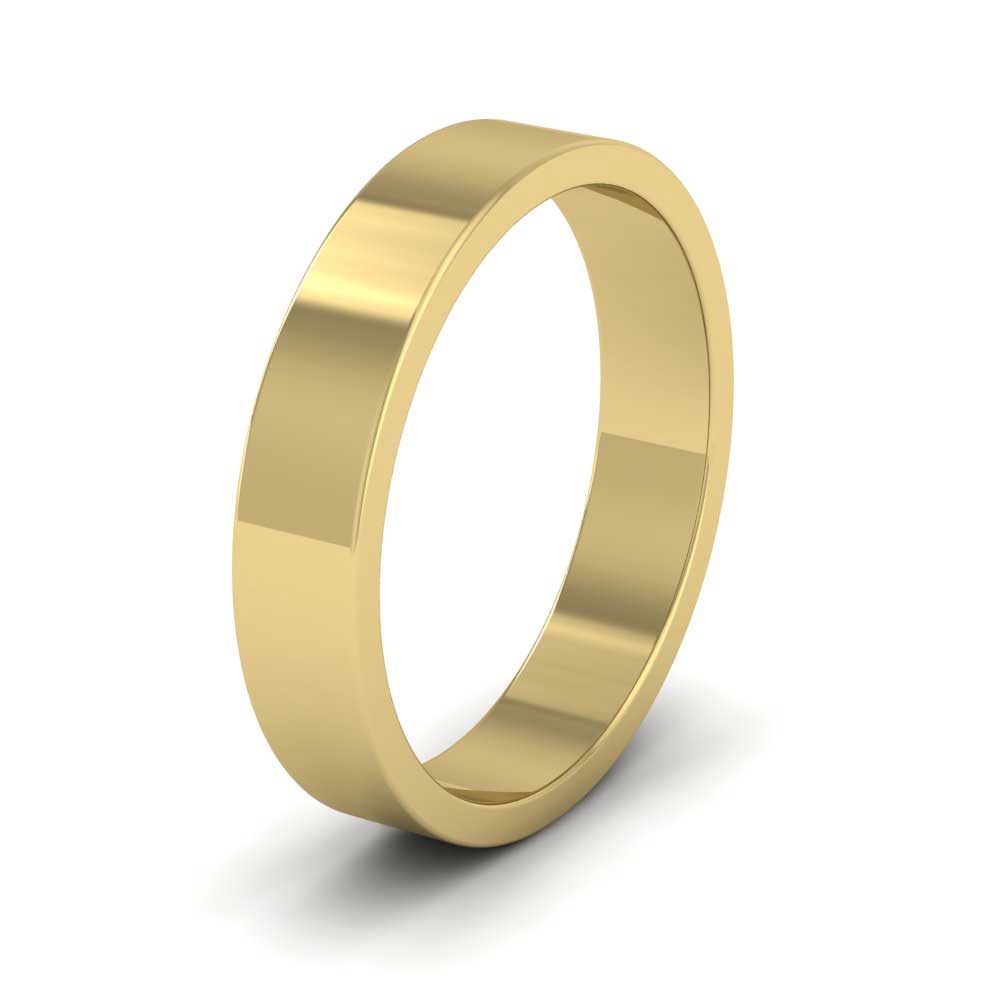 4mm wide extra heavy weight 9ct yellow gold wedding ring. This wedding band has a flat outside profile with a flat inside and is available in sizes D-Z+6.