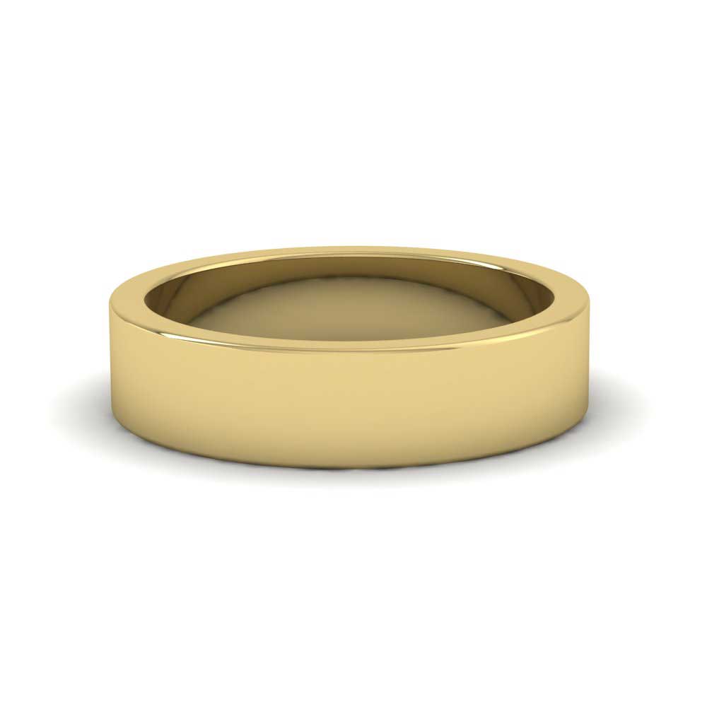 5mm wide super heavy weight 9ct yellow gold wedding ring. This wedding band has a flat outside profile with a flat inside and is available in sizes D-Z+12.