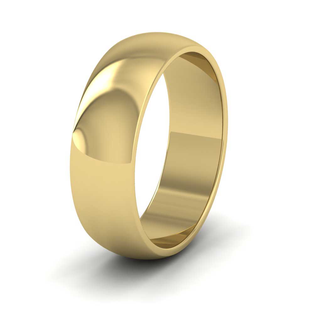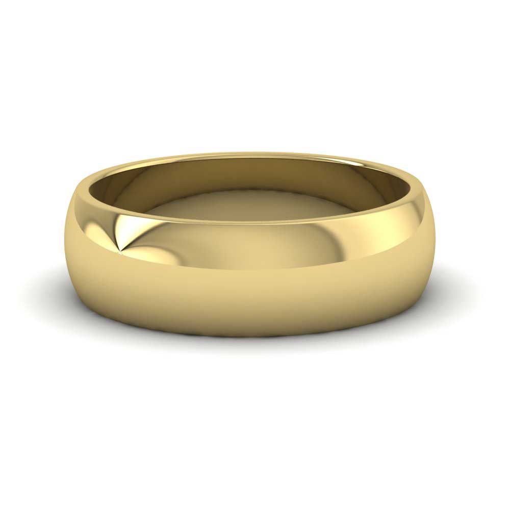 6mm wide extra heavy weight 9ct yellow gold wedding ring. This wedding band has a rounded outside profile with a flat inside and is available in sizes D-Z+6.