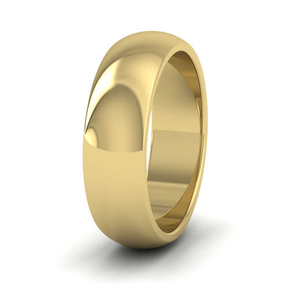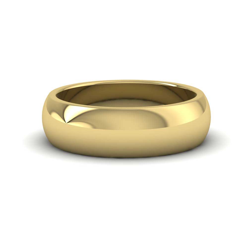 6mm wide super heavy weight 9ct yellow gold wedding ring. This wedding band has a rounded outside profile with a flat inside and is available in sizes D-Z+12.