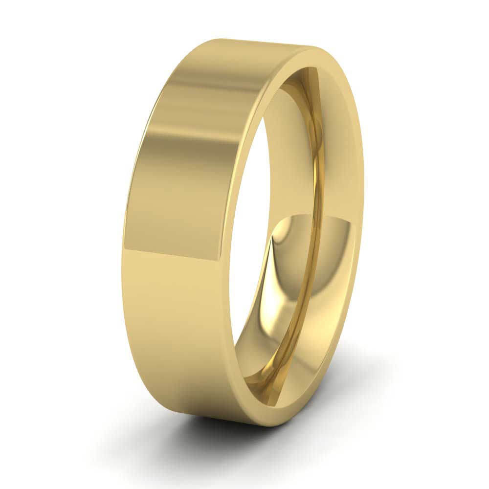 6mm wide super heavy weight 9ct yellow gold wedding ring. This wedding band has a flat outside profile with a rounded court shape inside for a softer and more comfortable feeling when worn. Available in sizes D-Z+12.