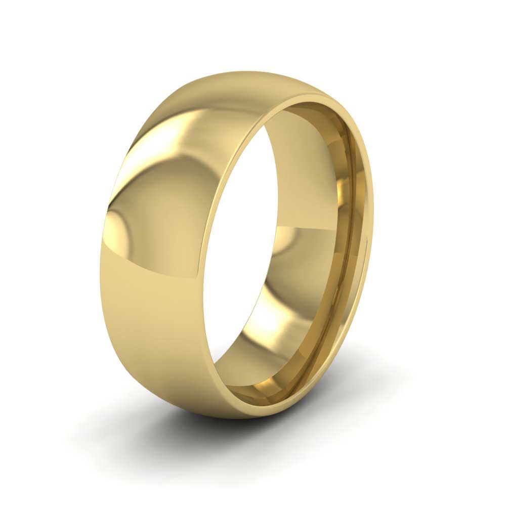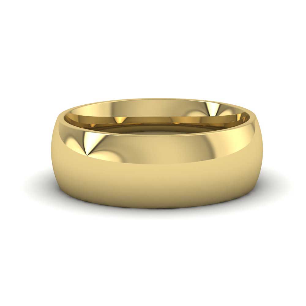 7mm wide extra heavy weight 9ct yellow gold wedding ring. This wedding band has a rounded outside profile with a rounded court shape inside for a softer and more comfortable feeling when worn. Available in sizes D-Z+6.