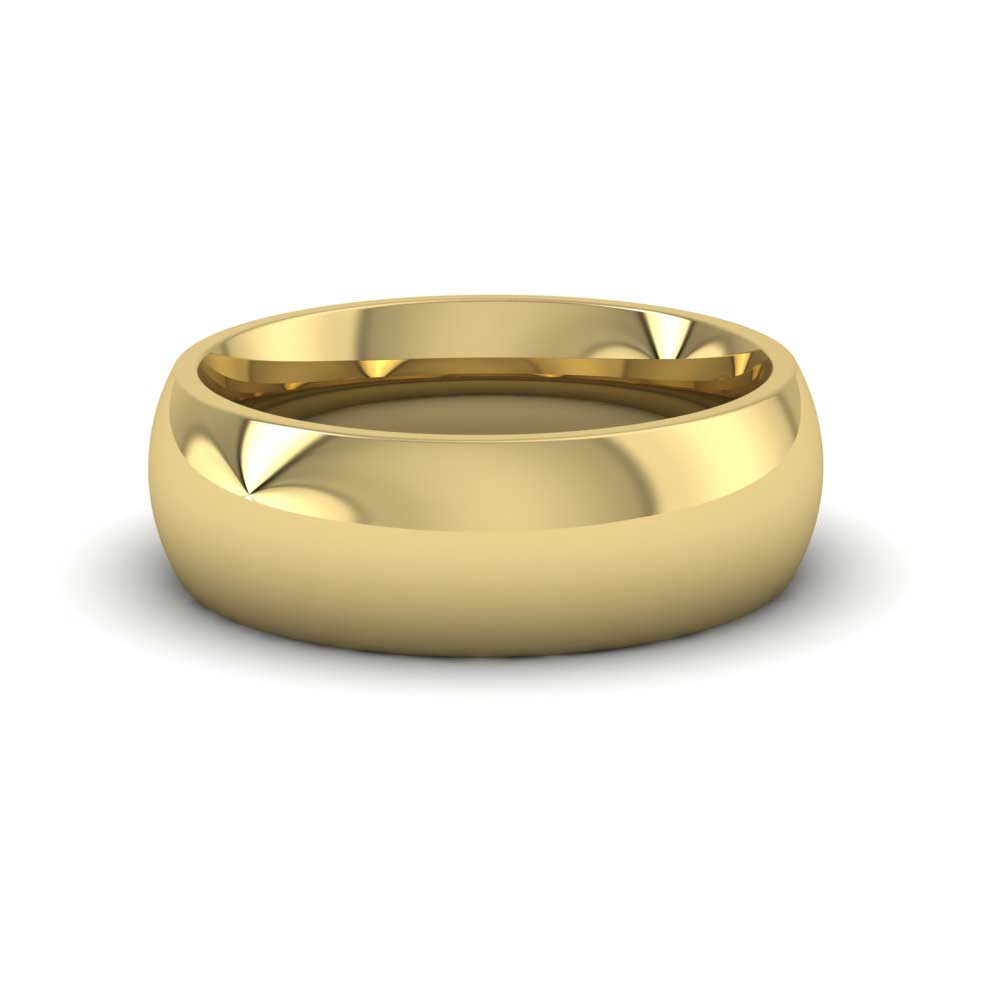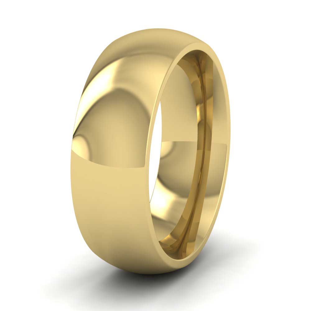 7mm wide super heavy weight 9ct yellow gold wedding ring. This wedding band has a rounded outside profile with a rounded court shape inside for a softer and more comfortable feeling when worn. Available in sizes D-Z+6.