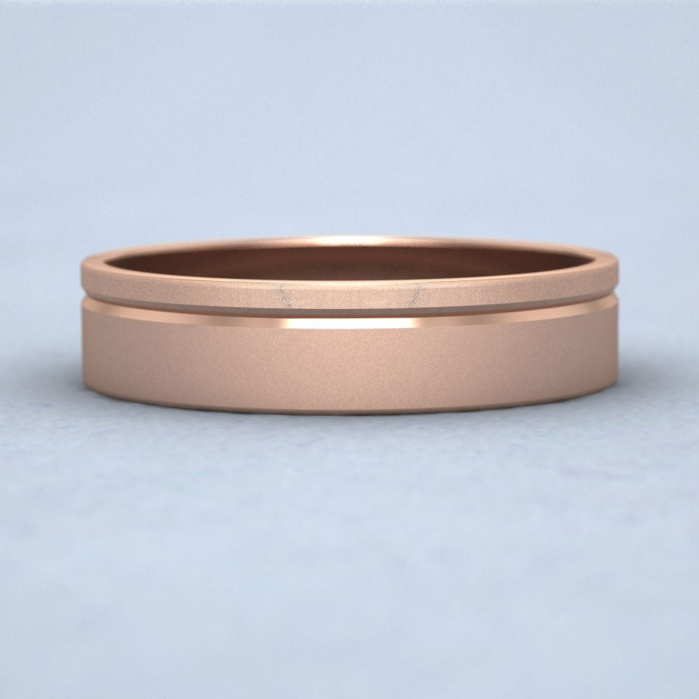 9ct Rose Gold Asymmetric Line Pattern Flat Wedding Ring. 5mm Wide (Shown With A Matt Finish)