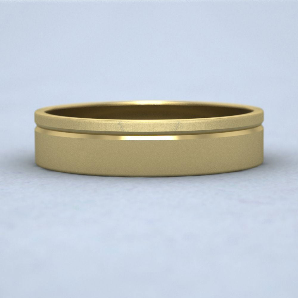 9ct Yellow Gold Asymmetric Line Pattern Flat Wedding Ring. 5mm Wide (Shown With A Matt Finish)