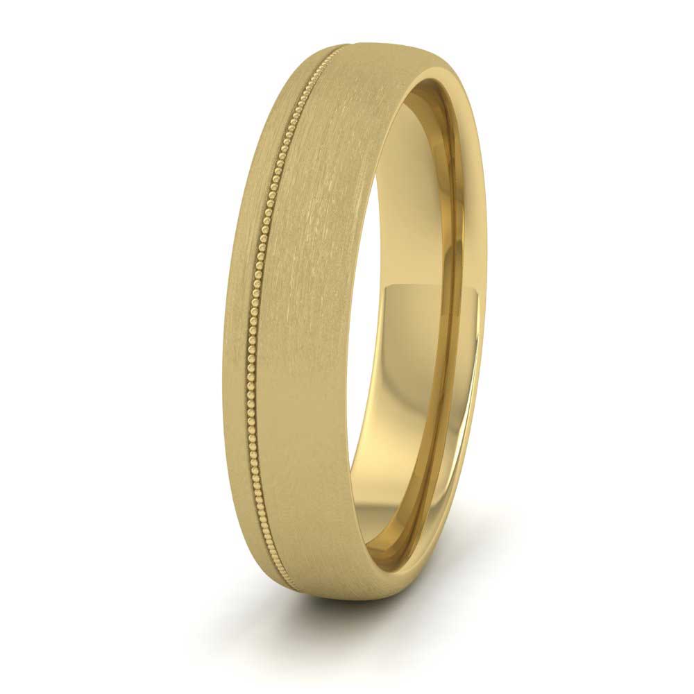 18ct Yellow Gold Asymmetric Millgrain Wedding Ring. 5mm Wide And Court Shaped For Comfortable Fitting (Shown With A Matt Finish)