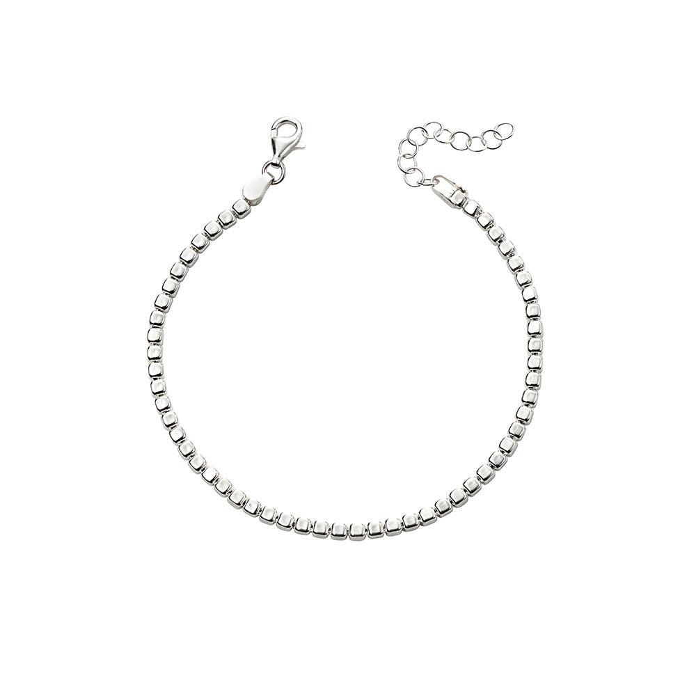 Sterling silver square beaded bracelet, adjustable in Length up to 7 3/4 inches.