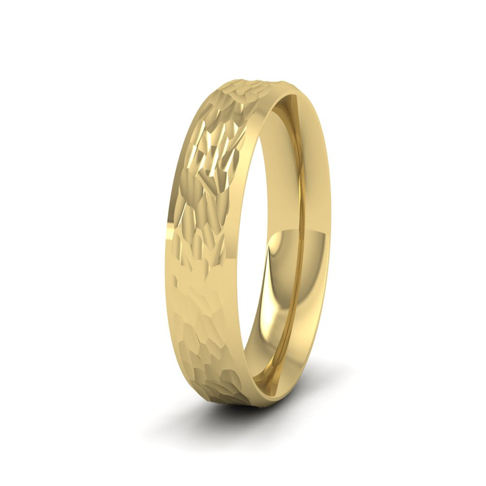Bevelled Edge And Hammered Centre 22ct Yellow Gold 4mm Wedding Ring