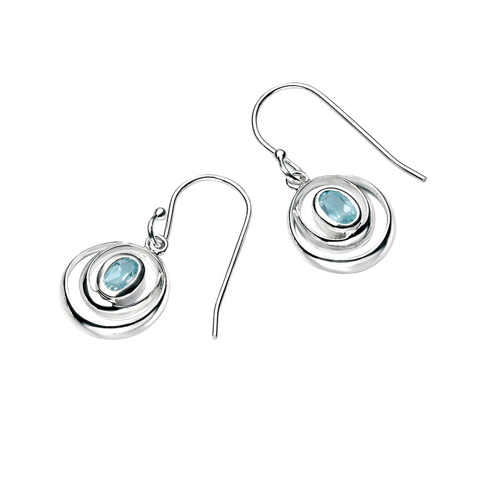 Blue Topaz Swirl Earrings In Sterling Silver