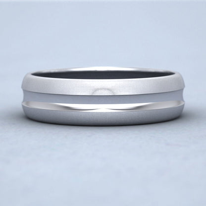 Bullnose Groove Pattern 18ct White Gold 6mm Wedding Ring