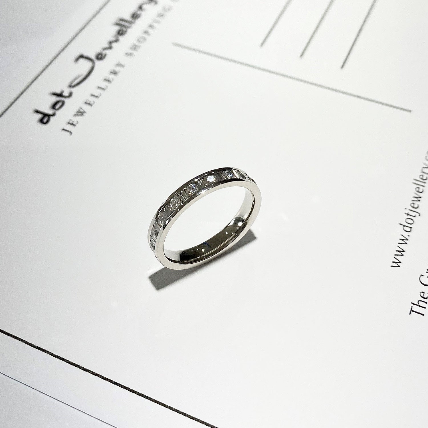 18ct White Gold Channel Set Alternate Baguette And Round Diamond Ring (0.5ct). 3mm Wide And Court Shaped For Comfortable Fitting