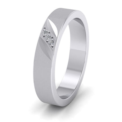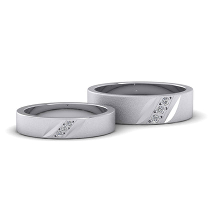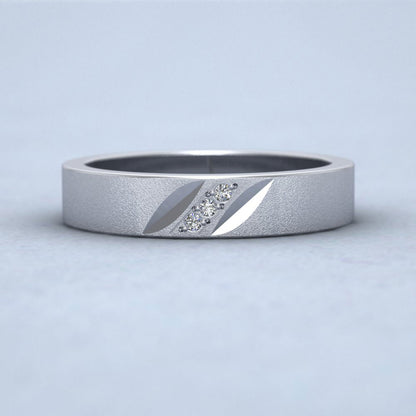 Diagonal Cut And Diamond Set 18ct White Gold 4mm Flat Wedding Ring