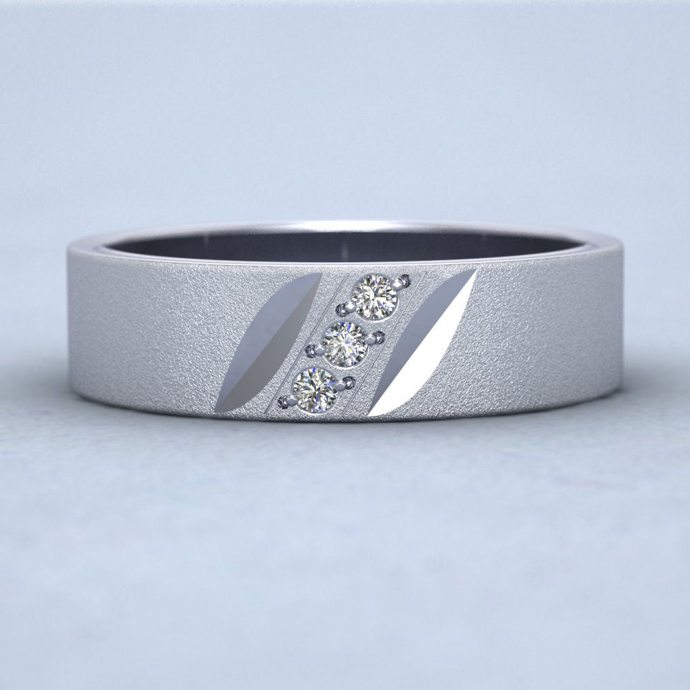 Diagonal Cut And Diamond Set 18ct White Gold 6mm Flat Wedding Ring