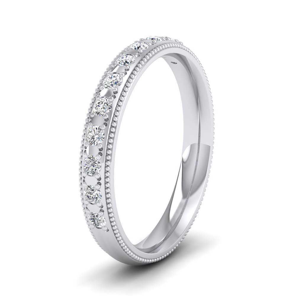 950 Platinum Diamond Set (0.24ct) With Millgrain Edge Wedding Ring. 3mm Wide And Court Shaped For Comfortable Fitting