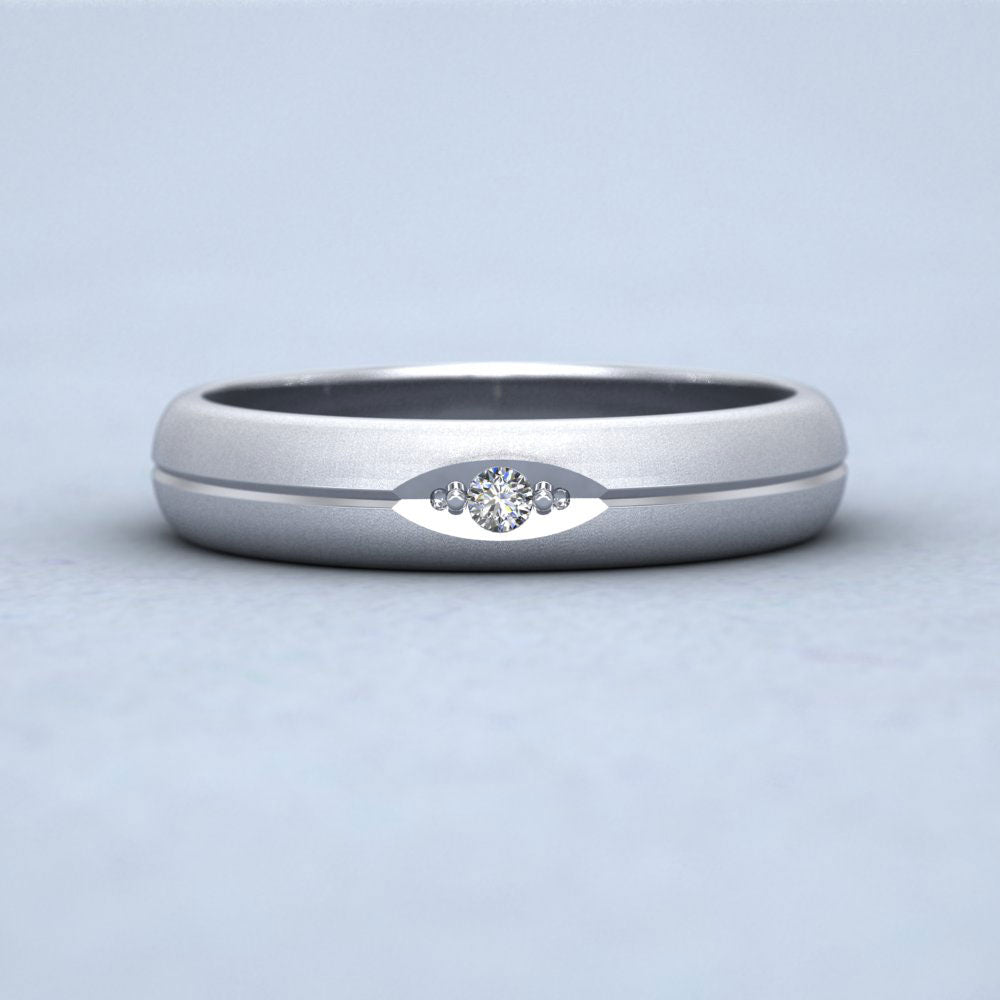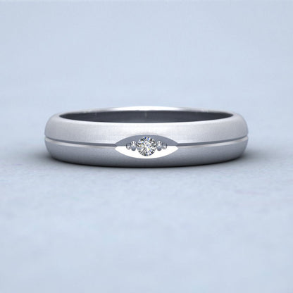 Diamond Set And Centre Line Pattern 18ct White Gold 4mm Wedding Ring