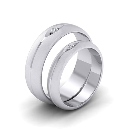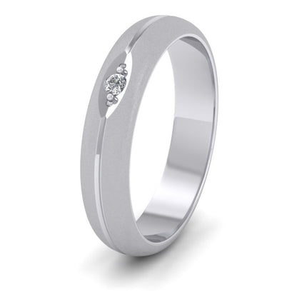 18ct White Gold Diamond Set And Centre Line Pattern Wedding Ring. 4mm Wide (Shown With A Matt Finish)
