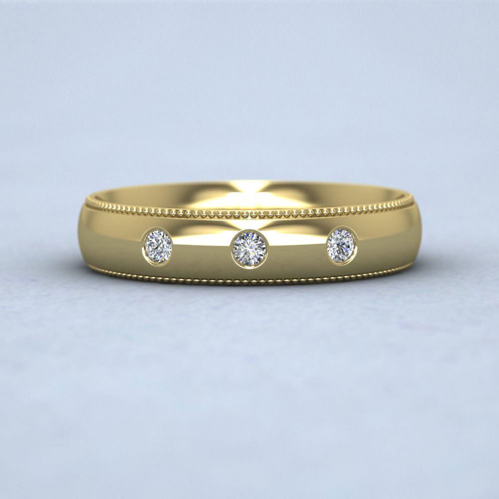 Diamond Set And Millgrain Edge 14ct Yellow Gold 4mm Wedding Ring