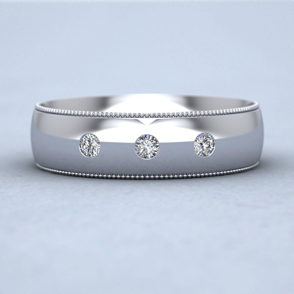 Diamond Set And Millgrain Edge 18ct White Gold 6mm Wedding Ring