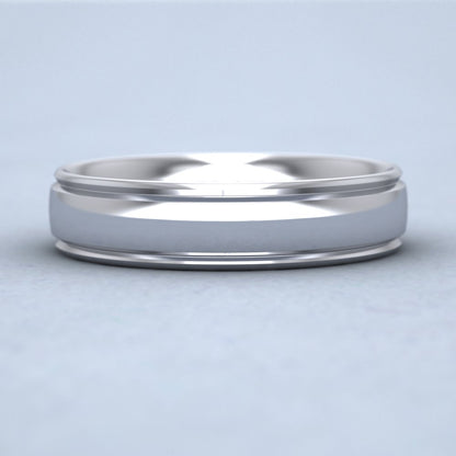 Edge Line Patterned 18ct White Gold 5mm Wedding Ring