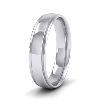 18ct White Gold Edge Line Patterned Wedding Ring. 5mm Wide And Court Shaped For Comfortable Fitting