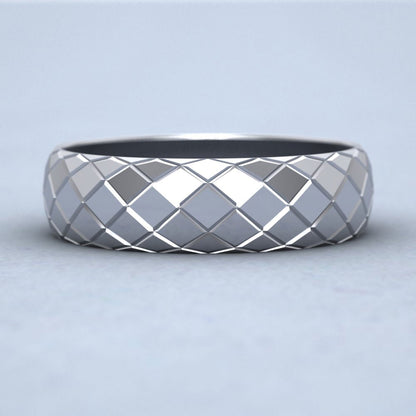 Facet And Line Harlequin Design 14ct White Gold 6mm Wedding Ring