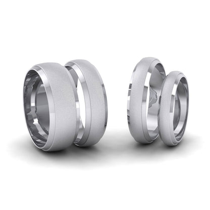 14ct White Gold Flat Edge Patterned And Matt Finish Wedding Ring. 4mm Wide