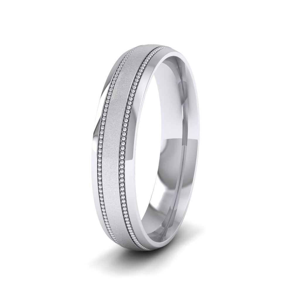 Millgrain And Contrasting Matt And Shiny Finish 18ct White Gold 4mm Wedding Ring