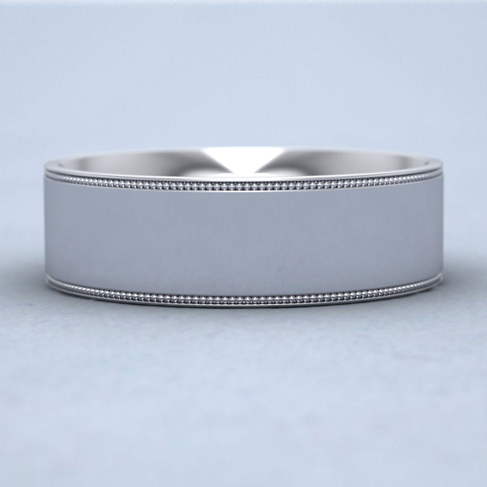 9ct White Gold Millgrain Edge Flat Wedding Ring. 7mm Wide And Court Shaped For Comfortable Fitting