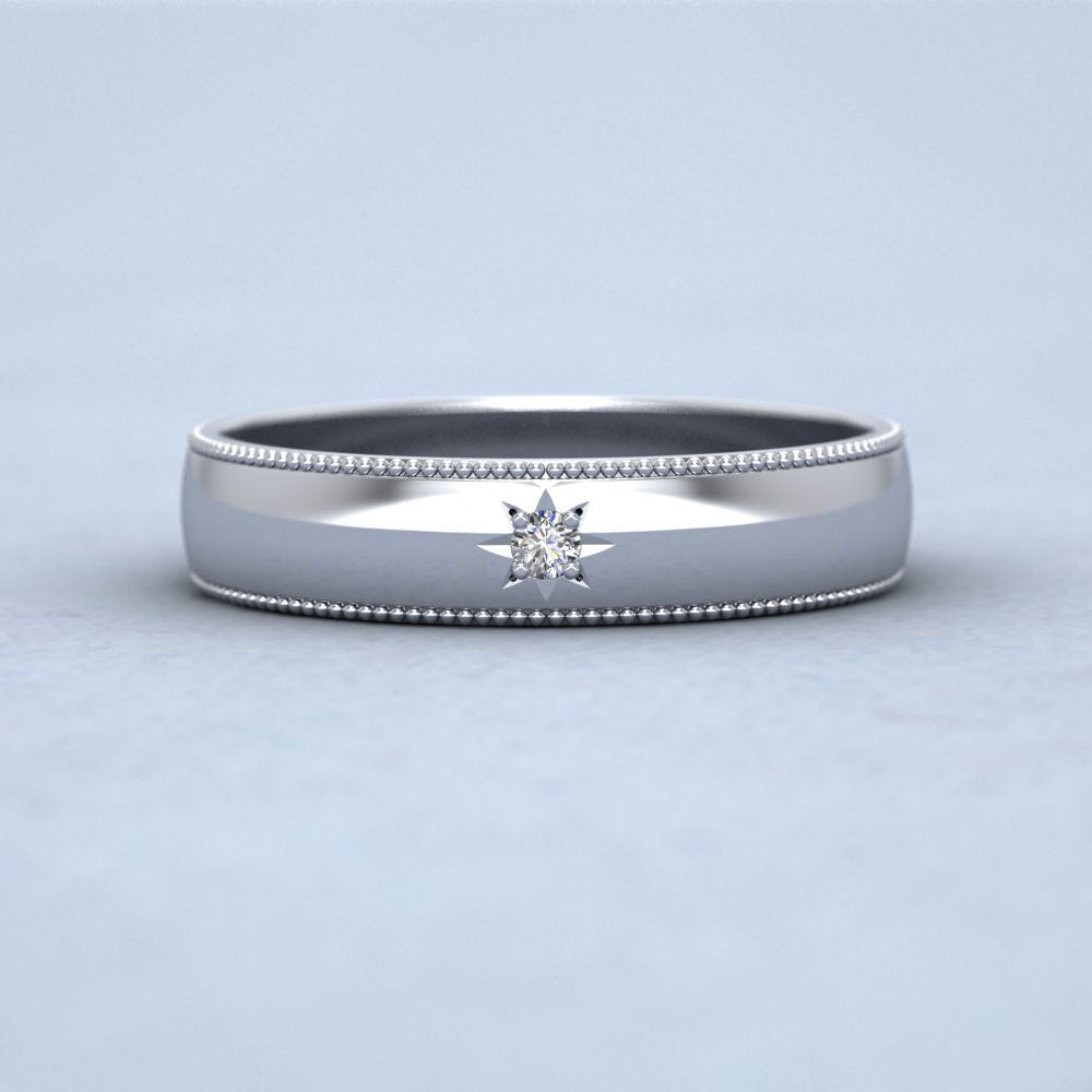 Millgrained Edge And Single Star Diamond Set 18ct White Gold 4mm Wedding Ring