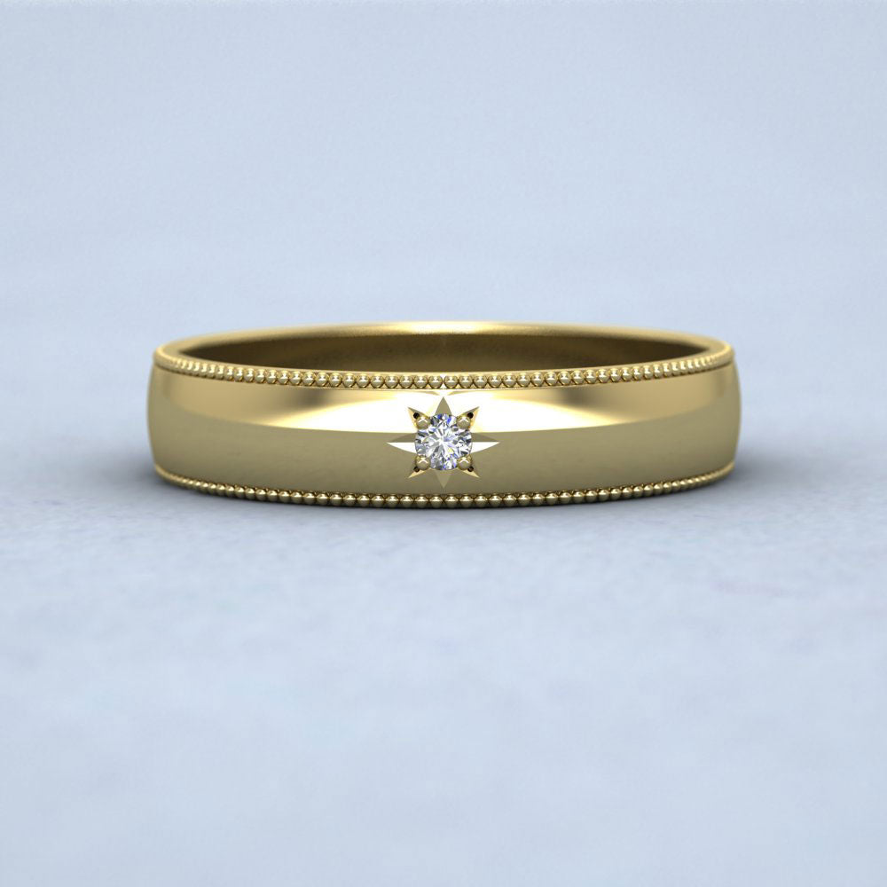 Millgrained Edge And Single Star Diamond Set 18ct Yellow Gold 4mm Wedding Ring