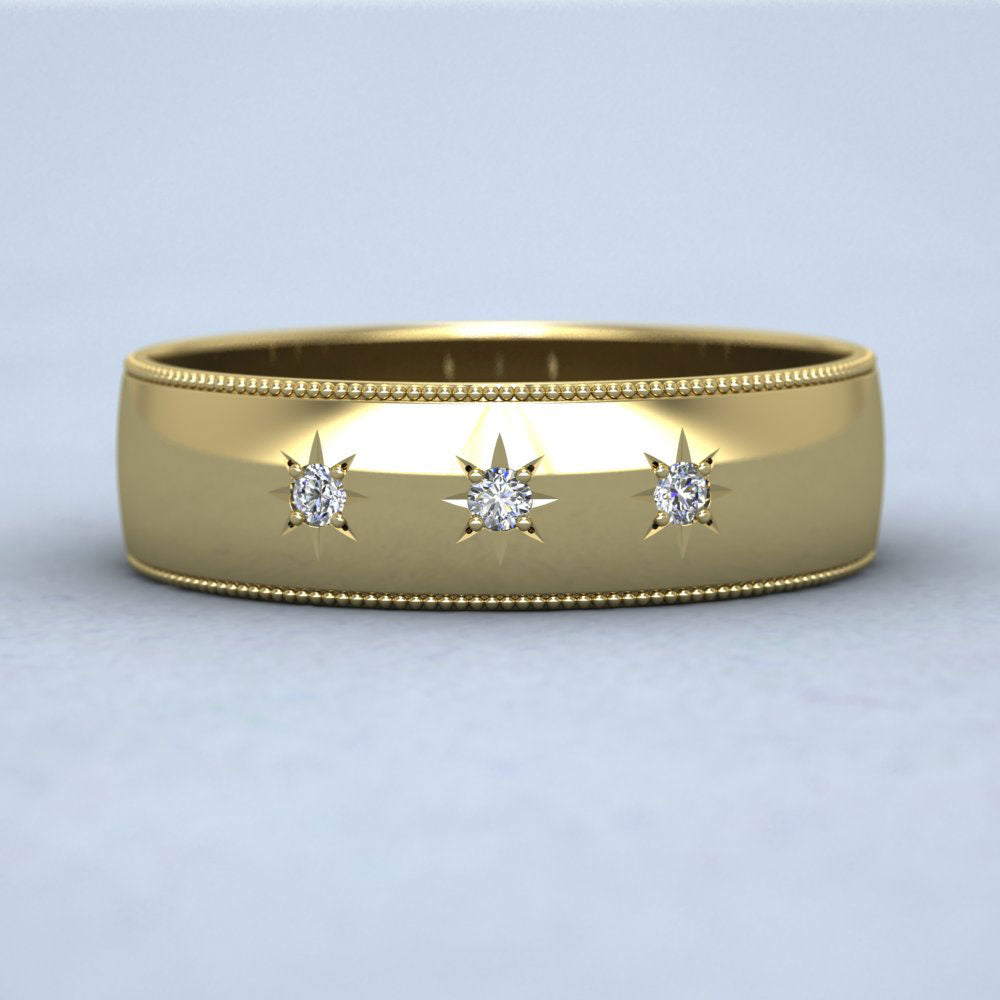 Millgrained Edge And Three Star Diamond Set 18ct Yellow Gold 6mm Wedding Ring