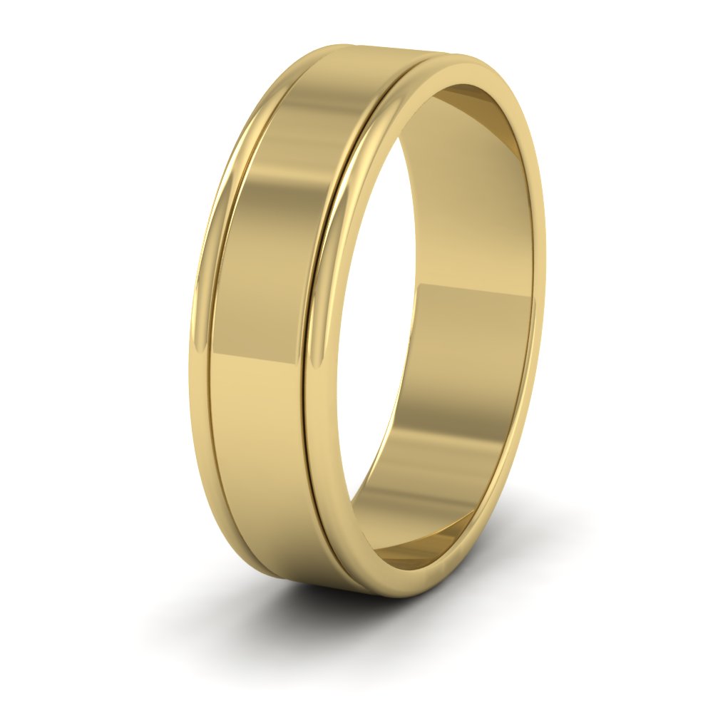 Rounded Edge Grooved Pattern Flat 18ct Yellow Gold 6mm Flat Wedding Ring