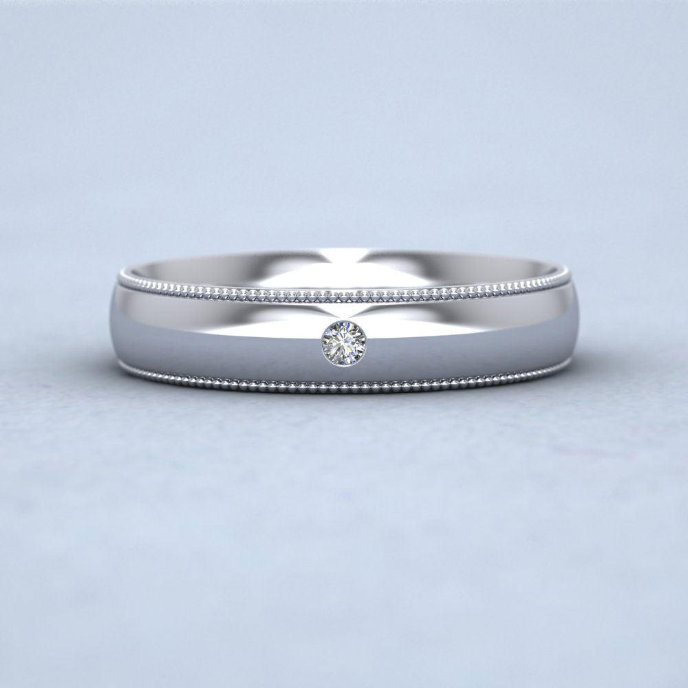 Single Flush Diamond Set And Millgrain Edge 14ct White Gold 4mm Wedding Ring