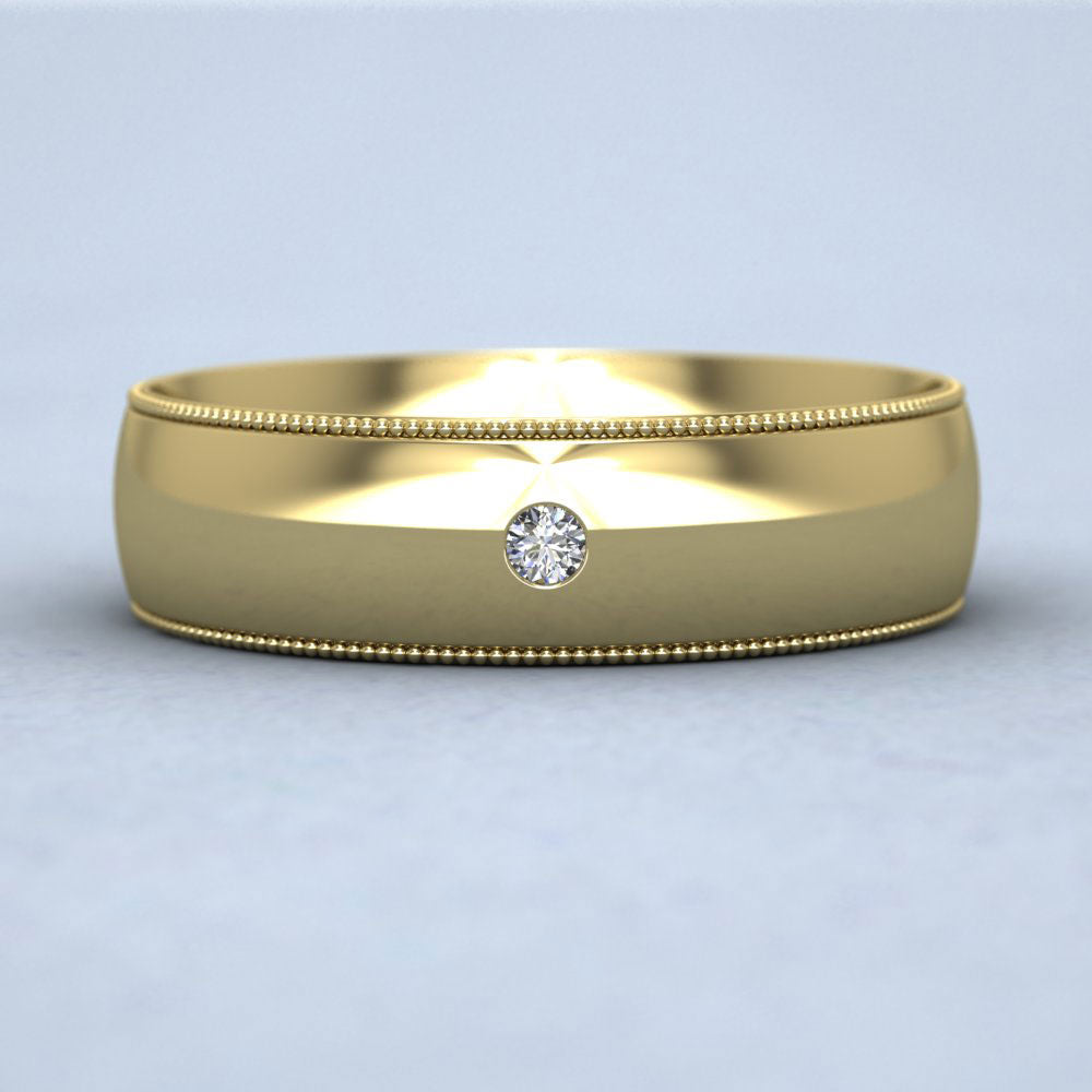 Single Flush Diamond Set And Millgrain Edge 18ct Yellow Gold 6mm Wedding Ring