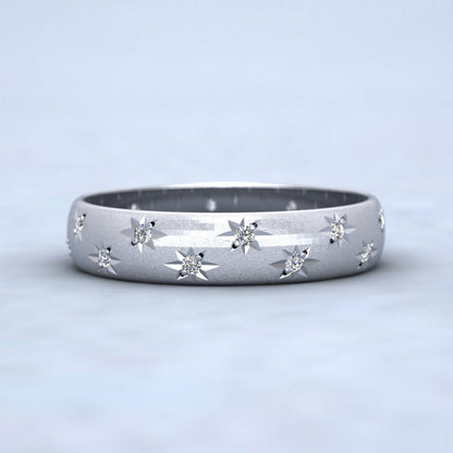 18ct White Gold Star And Diamond Set Wedding Ring. 4mm Wide (Shown With A Matt Finish)