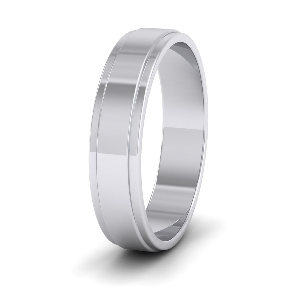 500 Palladium Stepped Edge Pattern Flat Wedding Ring. 5mm Wide