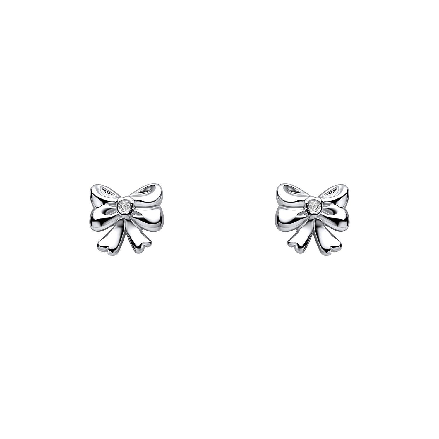 Sterling Silver Bow Stud Earrings Set With Diamond