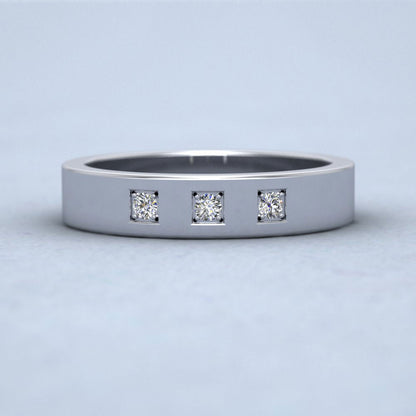 Three Diamonds With Square Setting 14ct White Gold 4mm Wedding Ring