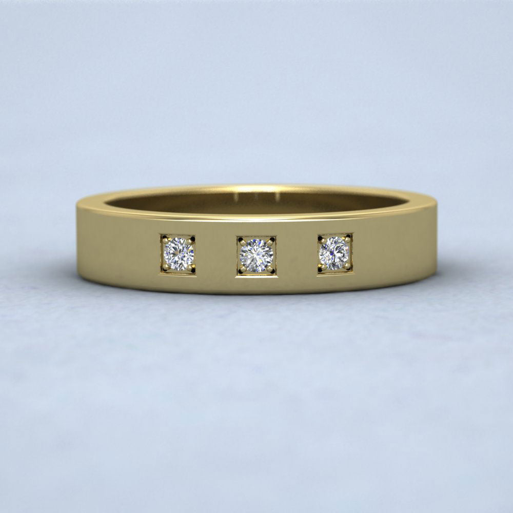 14ct Yellow Gold Three Diamonds With Square Setting Flat Wedding Ring. 4mm Wide